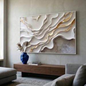 Quadro abstrato branco 3D – Arte minimalista moderna para sala