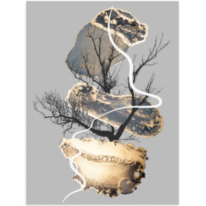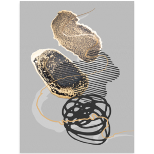Quadro abstrato moderno dourado com cinza elegante e moderno para ambientes sofisticados. Este quadro decorativo abstrato, está disponível em duas versões: canvas e chassis de madeira de eucalipto e canvas com moldura canaleta (branca, preta, tons de madeira).