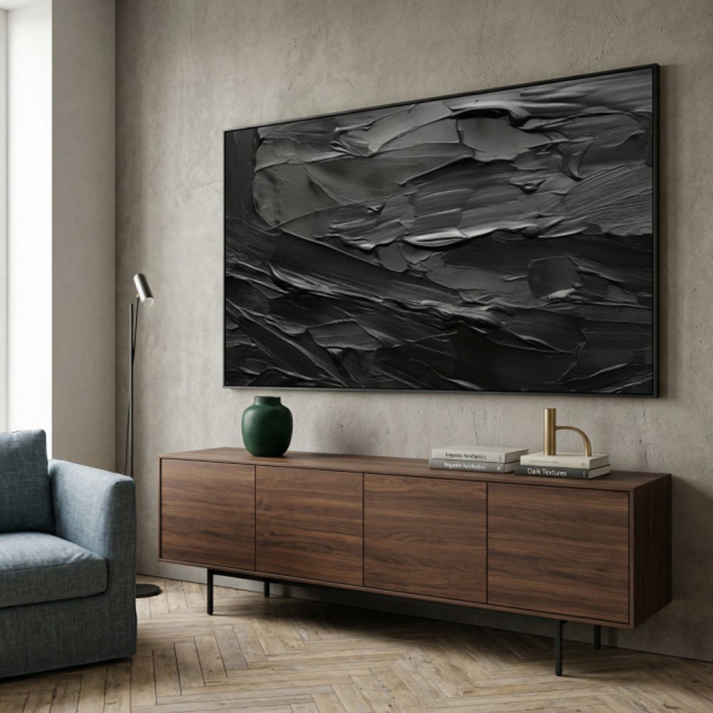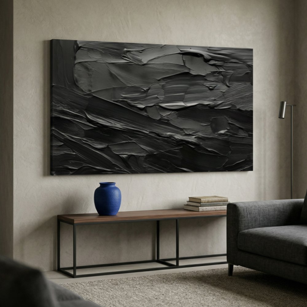 Quadro abstrato preto moderno – Arte texturizada para sala