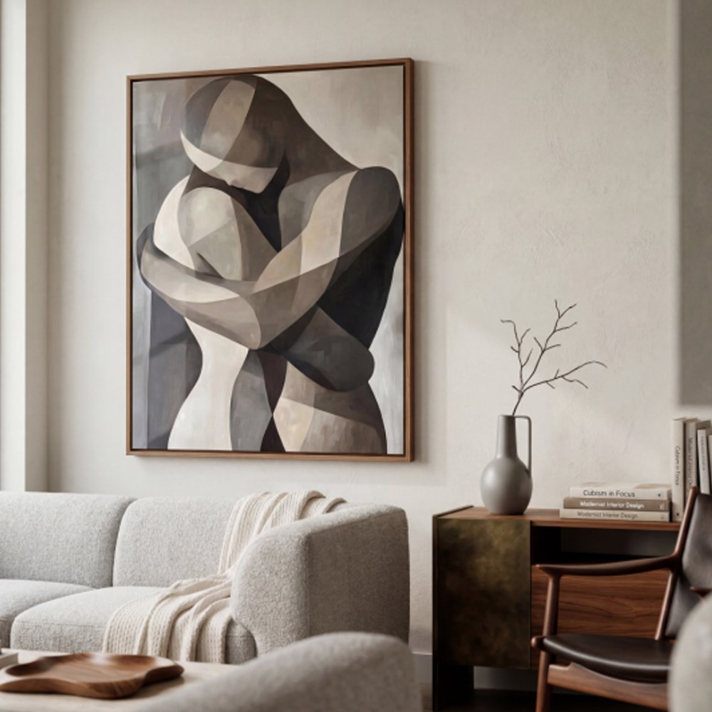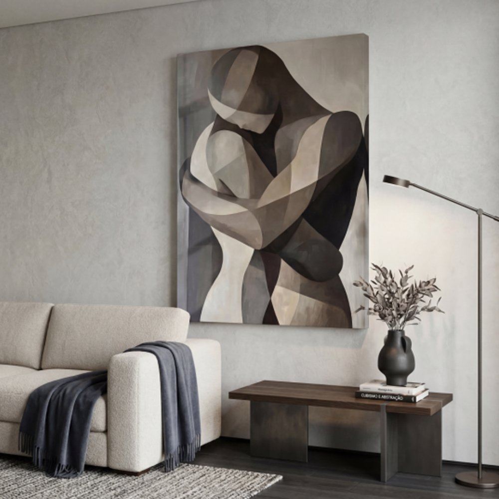 Ideal para salas modernas, quartos ou escritórios sofisticados, o quadro abraço abstrato transmite sentimentos de conexão, harmonia e elegância. Além de decorar, a obra cria um ponto focal artístico na parede, valorizando a estética do ambiente com um toque de arte contemporânea.
