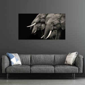 Quadro elefante colorido vertical elegante e moderno para ambientes sofisticados. Este quadro decorativo elefante colorido com moldura, está disponível em duas versões: canvas e chassis de madeira de eucalipto e canvas com moldura canaleta (branca, preta, tons de madeira).
