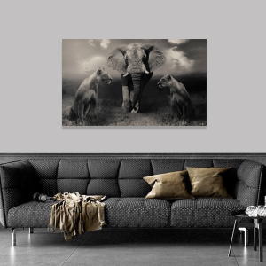 Quadro decorativo elefante colorido, vertical e grande para sala de estar fine art em tela canvas com moldura canaleta