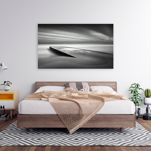 Quadro Pier preto e branco grande para sala estilo fine art em tela canvas com moldura canaleta