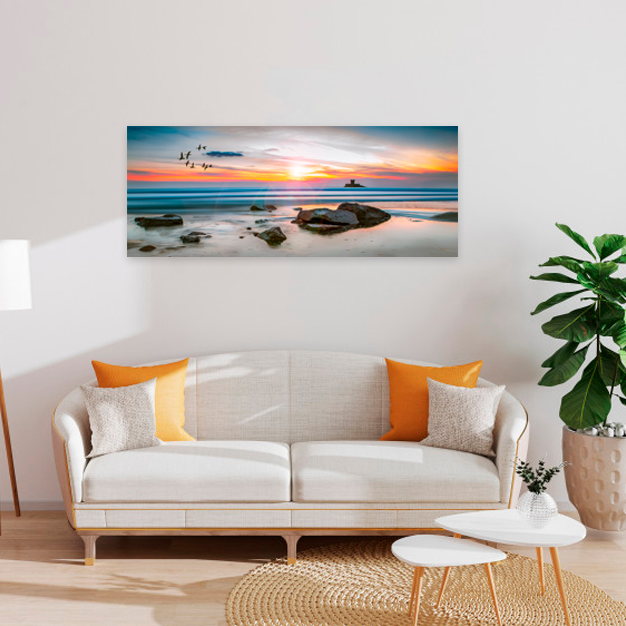 Quadro decorativo canvas panorâmico Praia no final de tarde