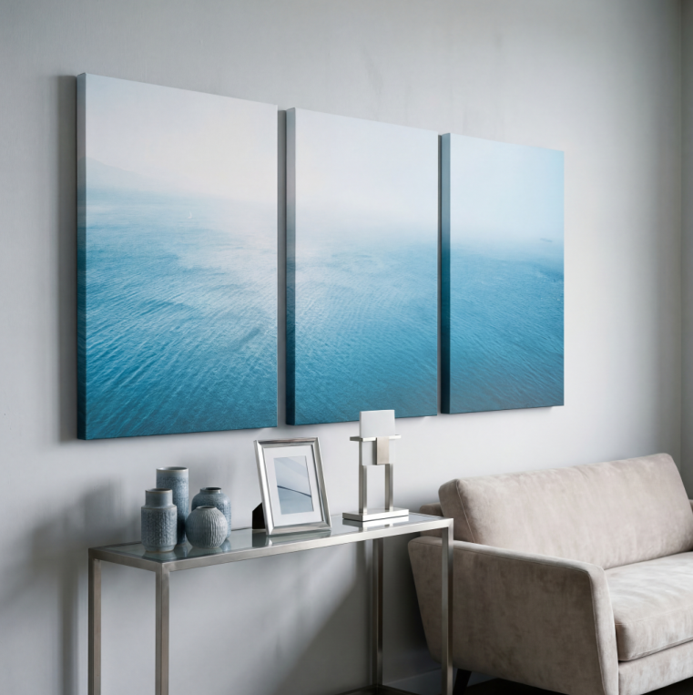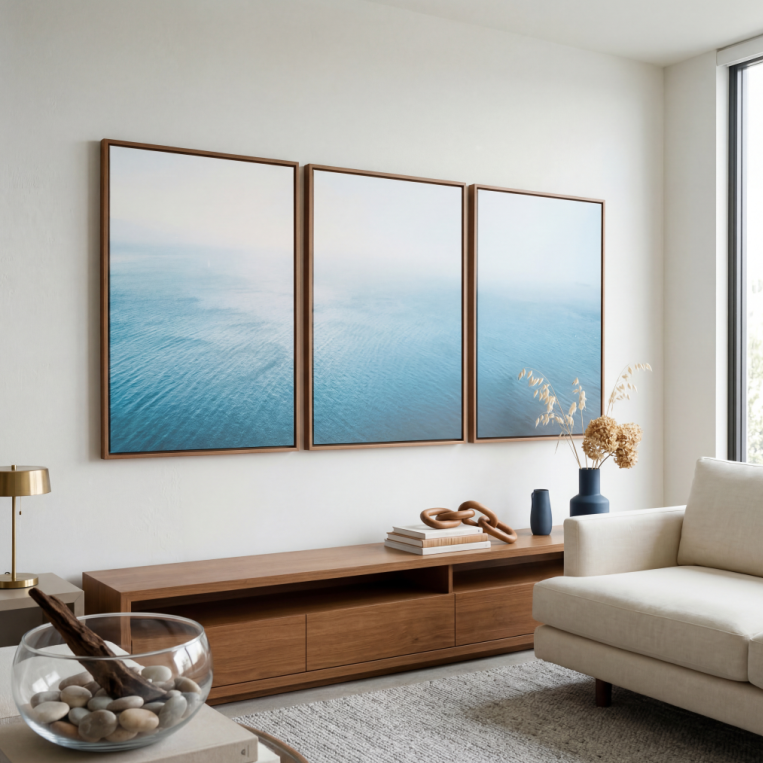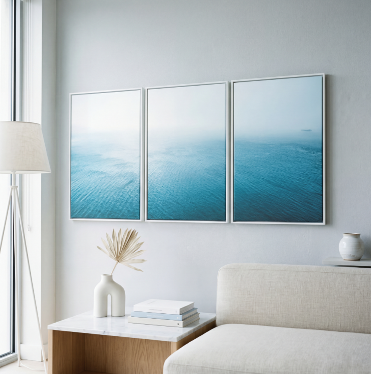 O quadro mar minimalista é uma peça decorativa perfeita para quem deseja criar um ambiente sofisticado, leve e contemporâneo. Inspirado na tranquilidade do oceano, este quadro apresenta uma paisagem marítima em tons suaves de azul, transmitindo calma, profundidade e elegância ao ambiente.